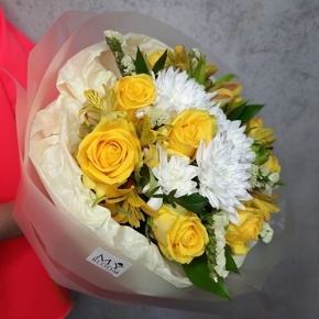 Букет "Никка" из роз, альстромерий и кустовых хризантем