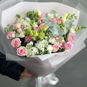 Букет "Особый случай " из ароматных маттиол, фрезий и кустовых роз